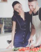 Zdjęcie "Młody mężczyzna kroi warzywa i kobieta stojąc z laptopem w kuchni" może być wykorzystywane do celów osobistych i komercyjnych zgodnie z warunkami zakupionej licencji Royalty-free. Obraz jest dostępny do pobrania w jakości wysokiej rozdzielczości do 5760x3840.
