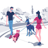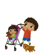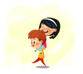 Zdjęcie "Ścisła siostra prowadzi młodszego brata za rękę. Cute postać kreskówki izolowane na białym tle. Kot jest w ramionach dziewczyny, chłopak patrzy w bok z otwartymi ustami." może być wykorzystywane do celów osobistych i komercyjnych zgodnie z warunkami zakupionej licencji Royalty-free. Obraz jest dostępny do pobrania w jakości wysokiej rozdzielczości do 5760x3840.