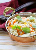 miski niegotowane ryżu i chili peppers Azji martwa natura