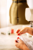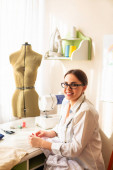 Widok z boku utalentowanej projektantki tworzącej odzież podczas pracy z manekinem w pracowni