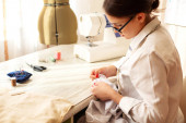 Zdjęcie "Widok z boku utalentowanej projektantki tworzącej odzież podczas pracy z manekinem w pracowni" może być wykorzystywane do celów osobistych i komercyjnych zgodnie z warunkami zakupionej licencji Royalty-free. Obraz jest dostępny do pobrania w jakości wysokiej rozdzielczości do 5760x3840.