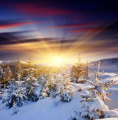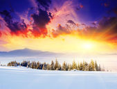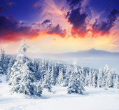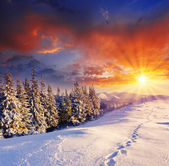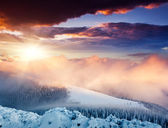 majestatyczny zachód słońca w zimowym krajobrazie gór. Obraz HDR