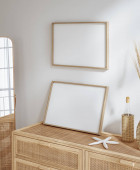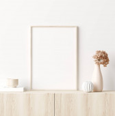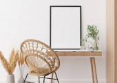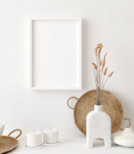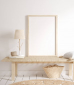 Mock up frame in cozy beżowy tło wnętrza domu, Boho stylu, 3d renderowania