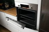 Zdjęcie "Open white kitchen oven on a comfortable kitchen." może być wykorzystywane do celów osobistych i komercyjnych zgodnie z warunkami zakupionej licencji Royalty-free. Obraz jest dostępny do pobrania w jakości wysokiej rozdzielczości do 5760x3840.