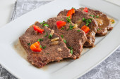 Domowej roboty duszona wołowina z sosem i ziemniakami