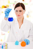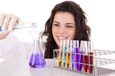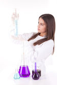 zbliżenie kobiety naukowca przeprowadzanie eksperymentów na białym tle