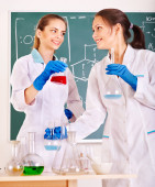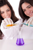 strzał dwóch kobiet naukowców pracuje w laboratorium