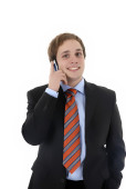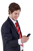 człowiek szczęśliwy biznesowe rozmowy na telefon komórkowy, isolaed
