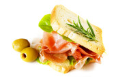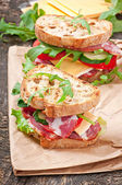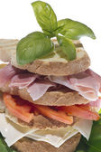 kanapka z szynką, serem i świeżych warzyw na białym tle