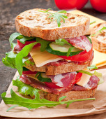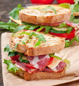 Zdjęcie "kanapka z szynkę, ser i świeże warzywa" może być wykorzystywane do celów osobistych i komercyjnych zgodnie z warunkami zakupionej licencji Royalty-free. Obraz jest dostępny do pobrania w jakości wysokiej rozdzielczości do 5760x3840.