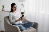 Zdjęcie "Afroamerykanka korzystająca z telefonu komórkowego w domu, mająca rozmowę wideo online podczas siedzenia w fotelu przed oknem" może być wykorzystywane do celów osobistych i komercyjnych zgodnie z warunkami zakupionej licencji Royalty-free. Obraz jest dostępny do pobrania w jakości wysokiej rozdzielczości do 5760x3840.