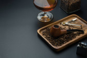 Facet gasił cygaro w popielniczce, z bliska. Kultura palenia tytoniu, specyficzny smak. mężczyzna palenie luisures w biuro