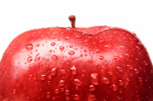 czerwony jabłko z duża kropla, Zdjęcia makro mokry