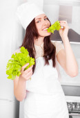 Zdjęcie "Ginger kobieta w fartuchu z zielenią" może być wykorzystywane do celów osobistych i komercyjnych zgodnie z warunkami zakupionej licencji Royalty-free. Obraz jest dostępny do pobrania w jakości wysokiej rozdzielczości do 5760x3840.