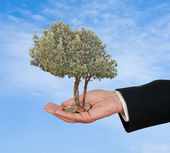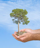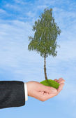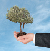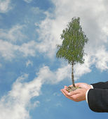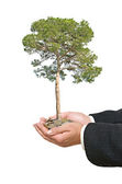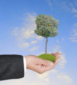 dłonie z growng drzewo ze stosu monet