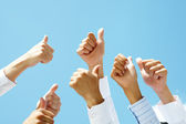 Zdjęcie "wielorasowe kciuki przeciw błękitne niebo" może być wykorzystywane do celów osobistych i komercyjnych zgodnie z warunkami zakupionej licencji Royalty-free. Obraz jest dostępny do pobrania w jakości wysokiej rozdzielczości do 5760x3840.