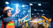 Zdjęcie "Zaawansowany system ramienia robota dla przemysłu cyfrowego i robotyki fabrycznej" może być wykorzystywane do celów osobistych i komercyjnych zgodnie z warunkami zakupionej licencji Royalty-free. Obraz jest dostępny do pobrania w jakości wysokiej rozdzielczości do 5760x3840.