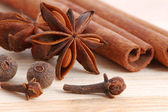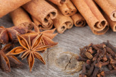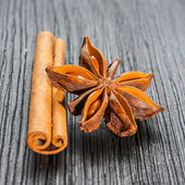 laski cynamonu i bliska gwiazdki anyżu na tle drewna