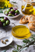 Oliwa z oliwek extra virgin na stole