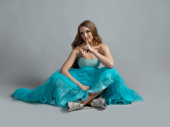 Zdjęcie "Nowoczesna księżniczka, piękno w koronie i bujna niebieska sukienka i tenisówki," może być wykorzystywane do celów osobistych i komercyjnych zgodnie z warunkami zakupionej licencji Royalty-free. Obraz jest dostępny do pobrania w jakości wysokiej rozdzielczości do 5760x3840.