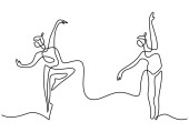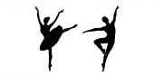 Wektor rysujący balerinę i tancerkę baletową w tańcu. Czarno-biała sylwetka tancerzy. Ilustracja izolowana na białym tle.