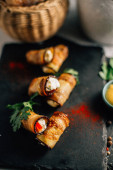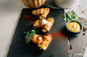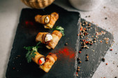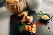 Bakłażan bułki z serem na kamiennej tablicy, widok z bliska
