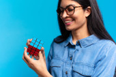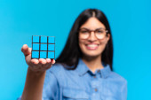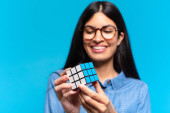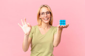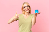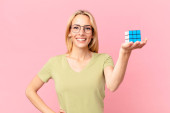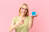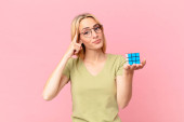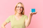 Gry blondynka ładna kobieta rozwiązywanie logiczne wyzwanie gry