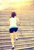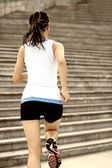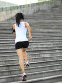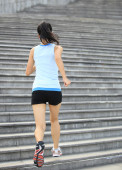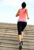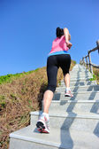 biegacz lekkoatletka uruchomiony na schodach, słuchanie muzyki