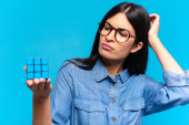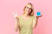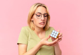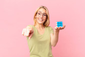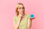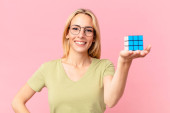 Gry blondynka ładna kobieta rozwiązywanie logiczne wyzwanie gry