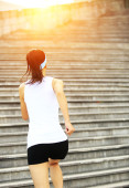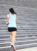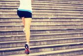 biegacz lekkoatletka uruchomiony na schodach, słuchanie muzyki