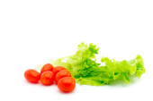 Sałata mokra z zielonym pieprzem i wieloma pomidorami wiśniowymi izolowane