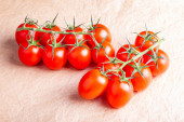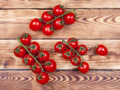Zdjęcie "Świeże pomidory gwałtu na stole. Układy płaskie" może być wykorzystywane do celów osobistych i komercyjnych zgodnie z warunkami zakupionej licencji Royalty-free. Obraz jest dostępny do pobrania w jakości wysokiej rozdzielczości do 5760x3840.