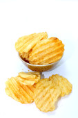 pyszne frytki w miska na białym tle