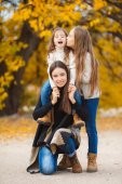 Szczęśliwa rodzina na zewnątrz na trawie w parku