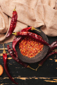 Skład z ostrą papryką chili na drewnianym tle