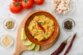 Zdjęcie "Patelnia smacznego kurczaka tikka masala na stole" może być wykorzystywane do celów osobistych i komercyjnych zgodnie z warunkami zakupionej licencji Royalty-free. Obraz jest dostępny do pobrania w jakości wysokiej rozdzielczości do 5760x3840.