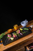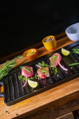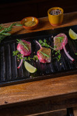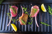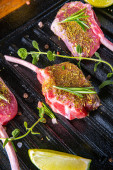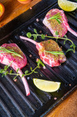 Surowe kotlety jagnięce sezonowane i marynowane zioła