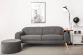 Zdjęcie "Stylowy salon z wygodną, ciemną sofą" może być wykorzystywane do celów osobistych i komercyjnych zgodnie z warunkami zakupionej licencji Royalty-free. Obraz jest dostępny do pobrania w jakości wysokiej rozdzielczości do 5760x3840.