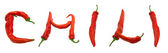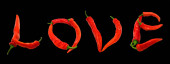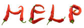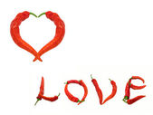 miłość tekst składający się z papryki chili. na białym tle.