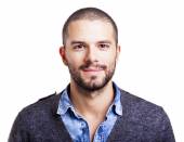 portret dorywczo Łacińskiej człowieka, uśmiech, na białym tle nad białym ba