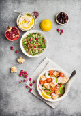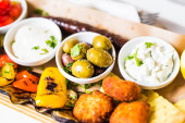Zdjęcie "Grecka sałatka i mięso souvlaki z góry" może być wykorzystywane do celów osobistych i komercyjnych zgodnie z warunkami zakupionej licencji Royalty-free. Obraz jest dostępny do pobrania w jakości wysokiej rozdzielczości do 5760x3840.