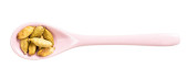 drewniana łyżka z fasolą odizolowaną na białym tle