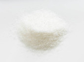 widok górny stosu substytutu cukru - krystaliczny ekstrakt z rośliny stewii zbliżenie na szarą płytę ceramiczną