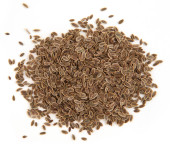 widok z góry stosu suszonych nasion koperku z bliska na szarej płycie ceramicznej