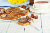 Chleb z orzechami laskowymi słodkiej czekolady rozłożone na stole