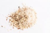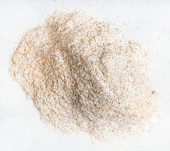 widok z góry stosu otrębów żytnich z bliska na szarej płycie ceramicznej