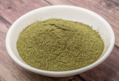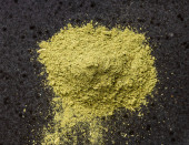 widok górny stosu zmielonych ziół stewii rebaudiana (naturalny substytut cukru) zbliżenie na szarej płycie ceramicznej