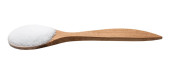 wodorowęglan sodu w drewnianej łyżce izolowany na białym tle
