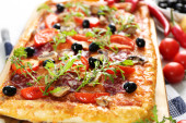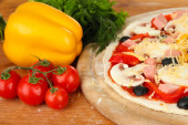 Zdjęcie "Pizza z rukolą na kolor drewniane tła" może być wykorzystywane do celów osobistych i komercyjnych zgodnie z warunkami zakupionej licencji Royalty-free. Obraz jest dostępny do pobrania w jakości wysokiej rozdzielczości do 5760x3840.