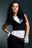 Seksowny Łacińskiej dziewczyna w ciemnych okularach taniec i rozbieranie kurtkę